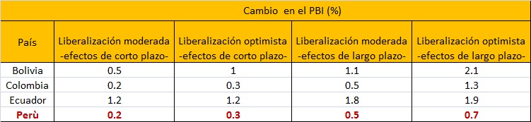 Cuadro: Impacto en las tasas de crecimiento económico del acuerdo comercial UE-Países Andinos